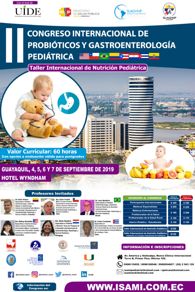 Es por ello que presentamos a usted (es) II CONGRESO INTERNACIONAL DE PROBIÓTICOS Y GASTROENTEROLOGÍA PEDIÁTRICA con el Aval Internacional de La Sociedad Latinoamericana de Gastroenterología, Hepatología y Nutrición Pediátrica SLAGHNP