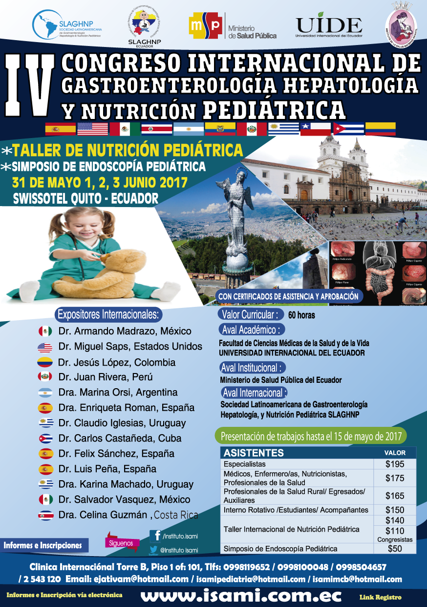 IV CONGRESO INTERNACIONAL Y NACIONAL DE GASTROENTEROLOGÍA HEPATOLOGÍA Y NUTRICIÓN PEDIÁTRICA